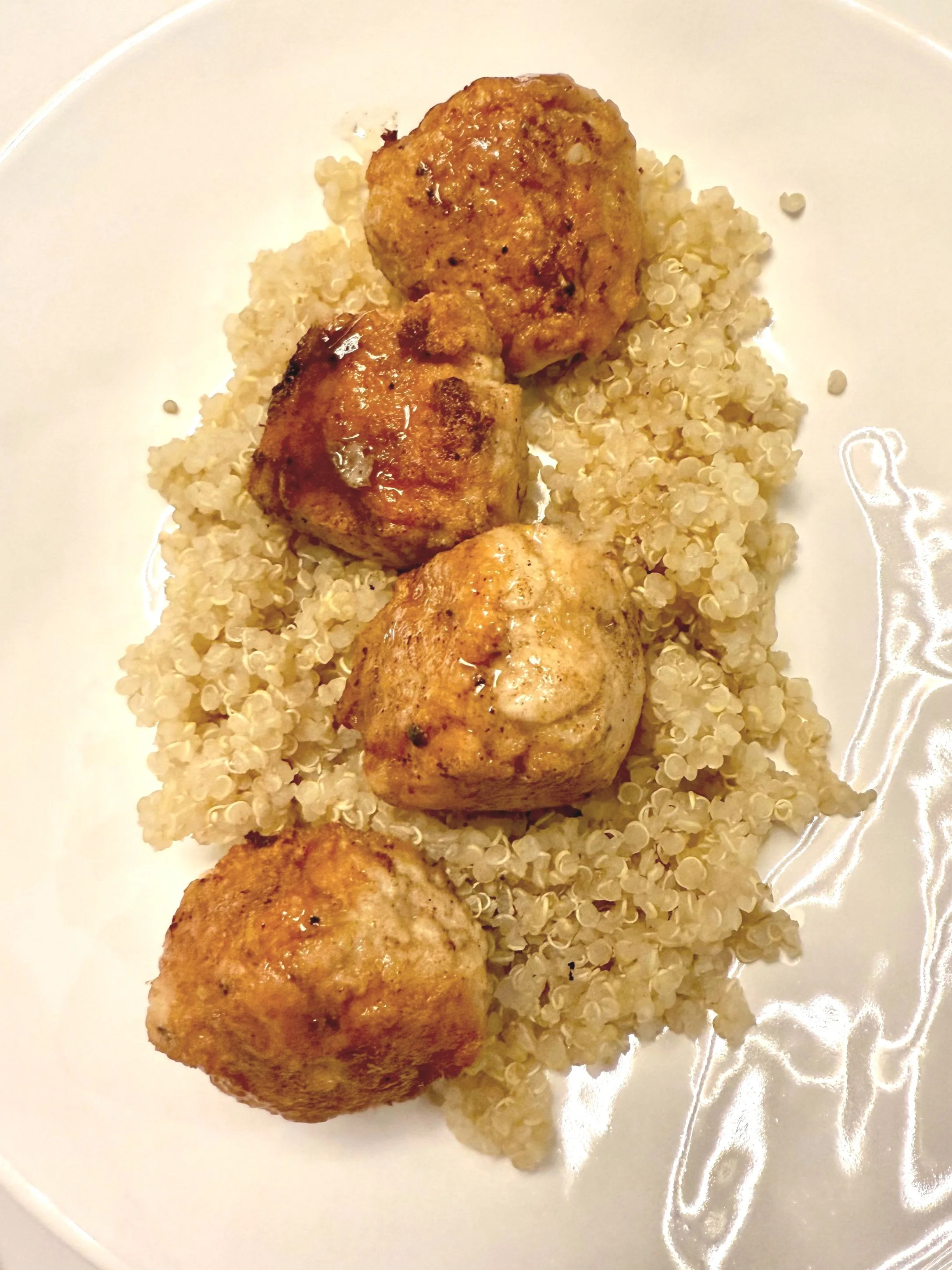 Marinate: In a bowl, mix in the ground turkey and herbs for the meatball marination. Tip: make sure the rice flour and cornstarch are thoroughly mixed into the meat. Store in the fridge for at least a few hours, or overnight.